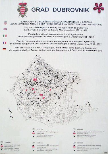 Die Zerstörungswut im Balkankrieg war gerade in Dubrovnik am Größten. Allein am Nikolaustag 1991 gingen mehr als 2.200 Granaten, welche vom Berg Srd aus auf die Stadt abgefeuert wurden, auf die eng stehenden Häuser der Altstadt nieder. Während der 9-monatigen Belagerung wurden mehr als 80% der Altstadt zerstört. Einzig der mehr als sechs Meter starke Festungsring der die Stadt umgibt konnte standhalten.